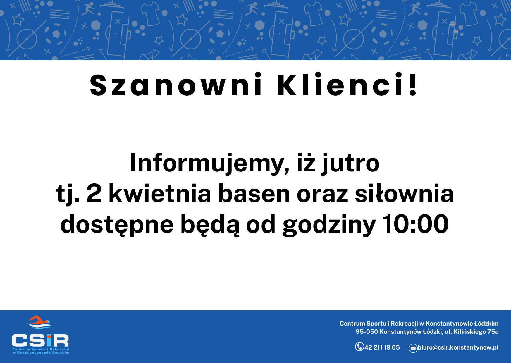 Grafik dostępności basenu w dniach 06.04 – 12.04