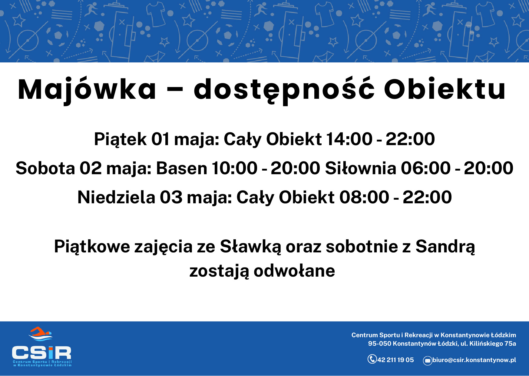 Majówka – dostępność Obiektu