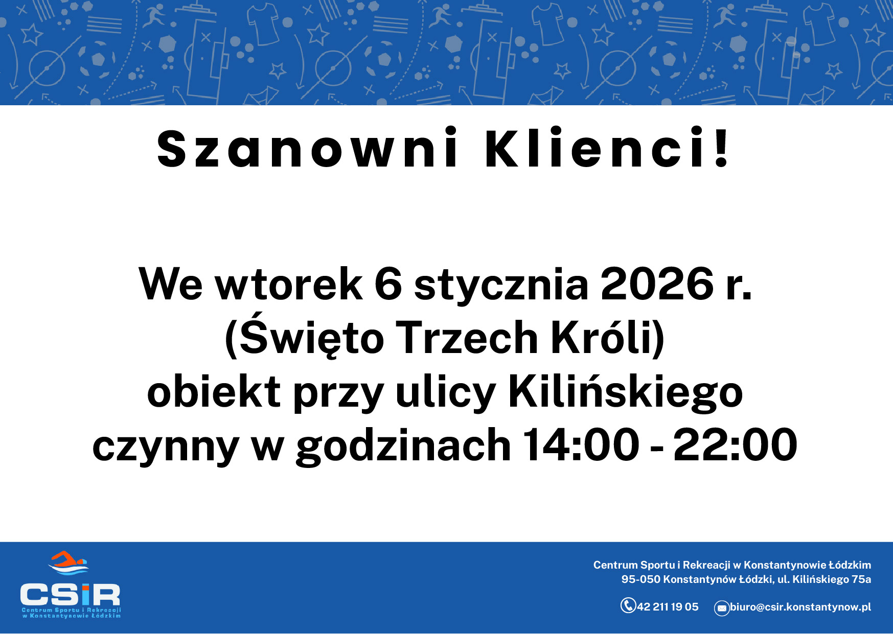 Grafik pracy siłowni i basenu w okresie świąteczno-noworocznym